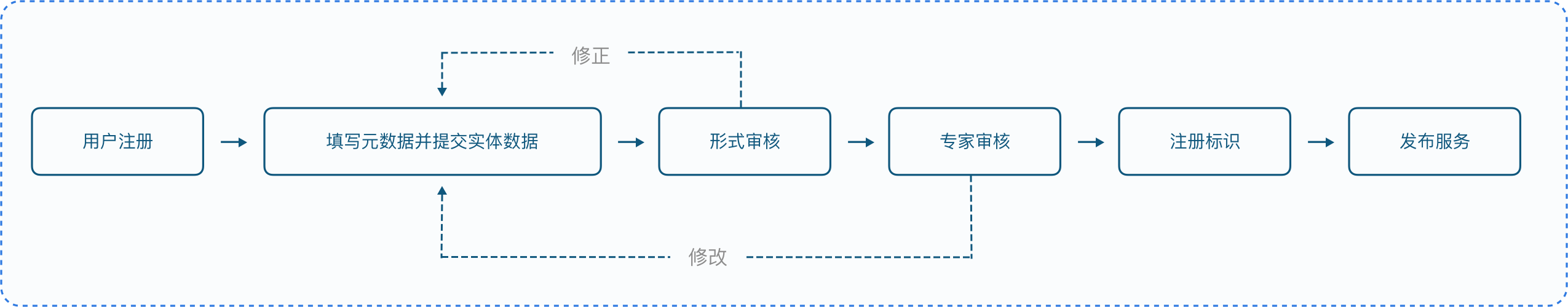 为生态领域相关科研人员或数据生产者个人提供数据产品汇聚、存储与发布服务。科学家通过系统提交数据产品,经审核、标识后发布共享;通过服务系统查看个人发布的所有数据产品及其访问情况。