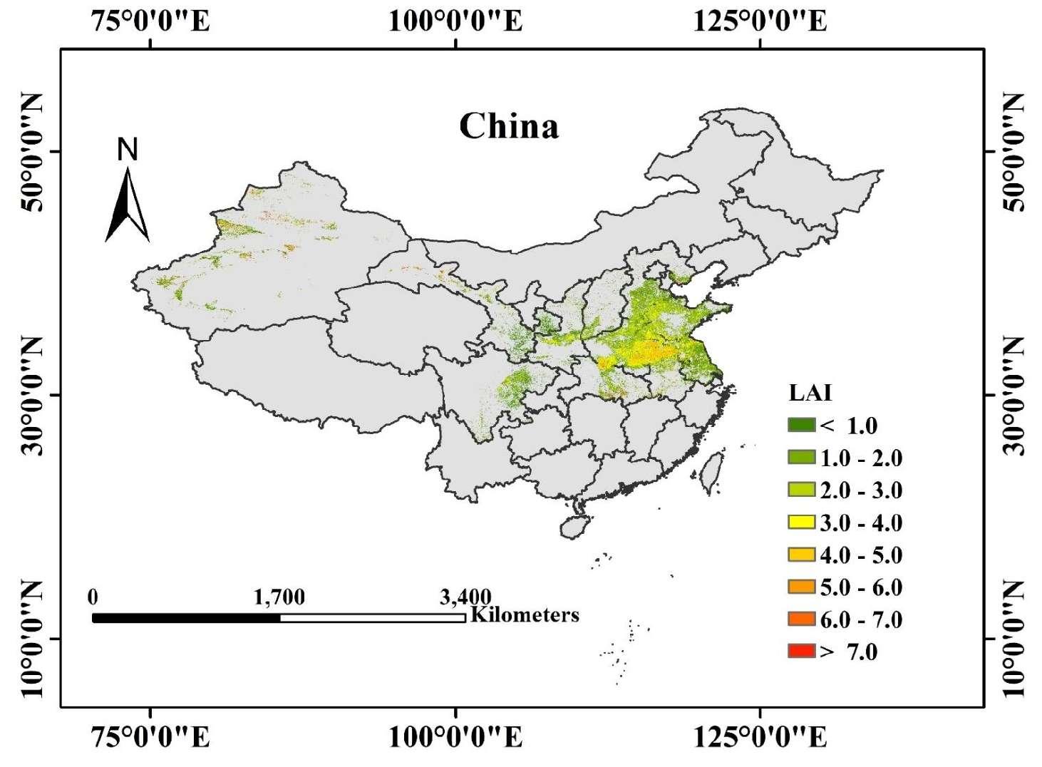 2020-2025年中国10m空间分辨率冬小麦关键生育期月度叶面积指数产品